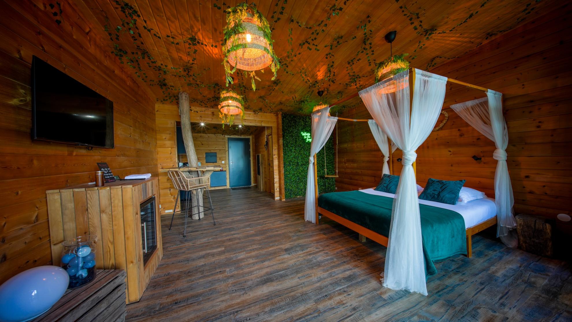 Evasion 100% nature garantie dans notre lodge Le Jungle. Décoration suprenante et ambiance très romantique ... Profitez d'un moment magique